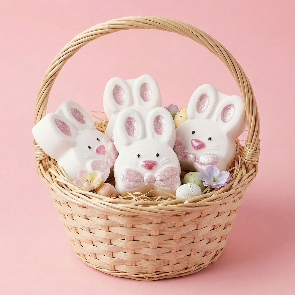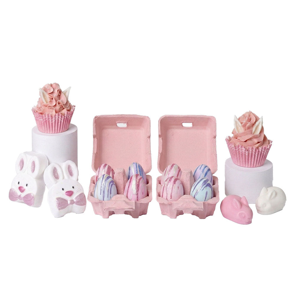 Hop into the ultimate Easter bath experience! This deluxe collection brings together all your springtime favorites for the sweetest soak of the season. Watch adorable bunny bath bombs and colorful egg bombs fizz into marshmallow-scented bliss, lather up with bakery-inspired bunny cupcake soaps topped with the cutest ears, and add a touch of whimsy with mini bunny soaps perfect for sink-side spring vibes.