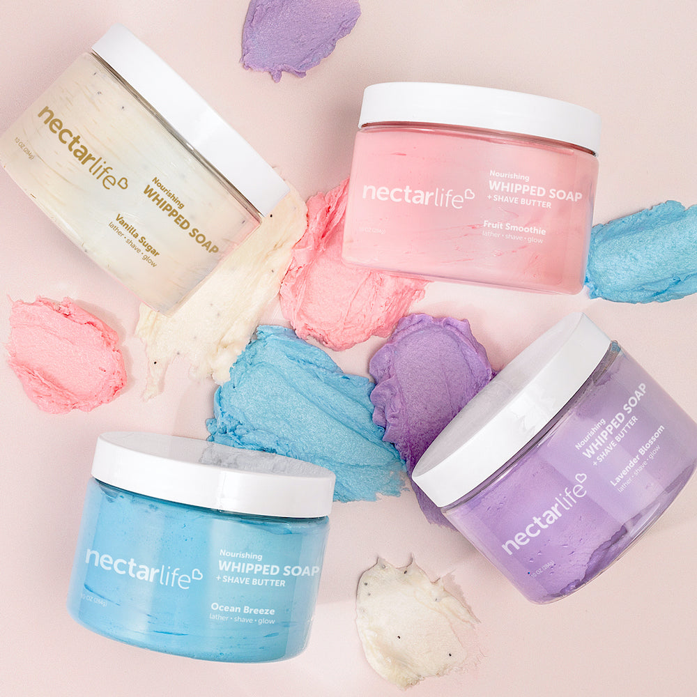 - Create a creamy, bubbly lather by massaging whipped soap between damp hands or loofah. Apply to skin, shave, cleanse with warm water, and rinse.