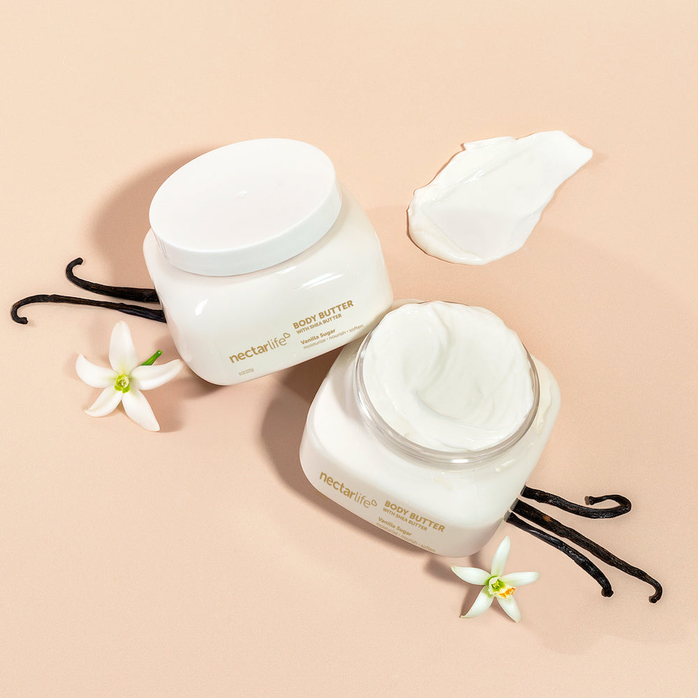 Vanilla Sugar: Aqua (Water), Butyrospermum Parkii (Shea) Butter, Persea Gratissima (Avocado) Oil, Prunus Armeniaca (Apricot) Kernel Oil, Cetearyl Alcohol, Stearic Acid, Cetyl Alcohol, Polysorbate 60, Parfum (Fragrance), Benzyl Alcohol, Phenoxyethanol, Caprylyl Glycol, Tocopheryl Acetate, Maranta Arundinacea Root Powder