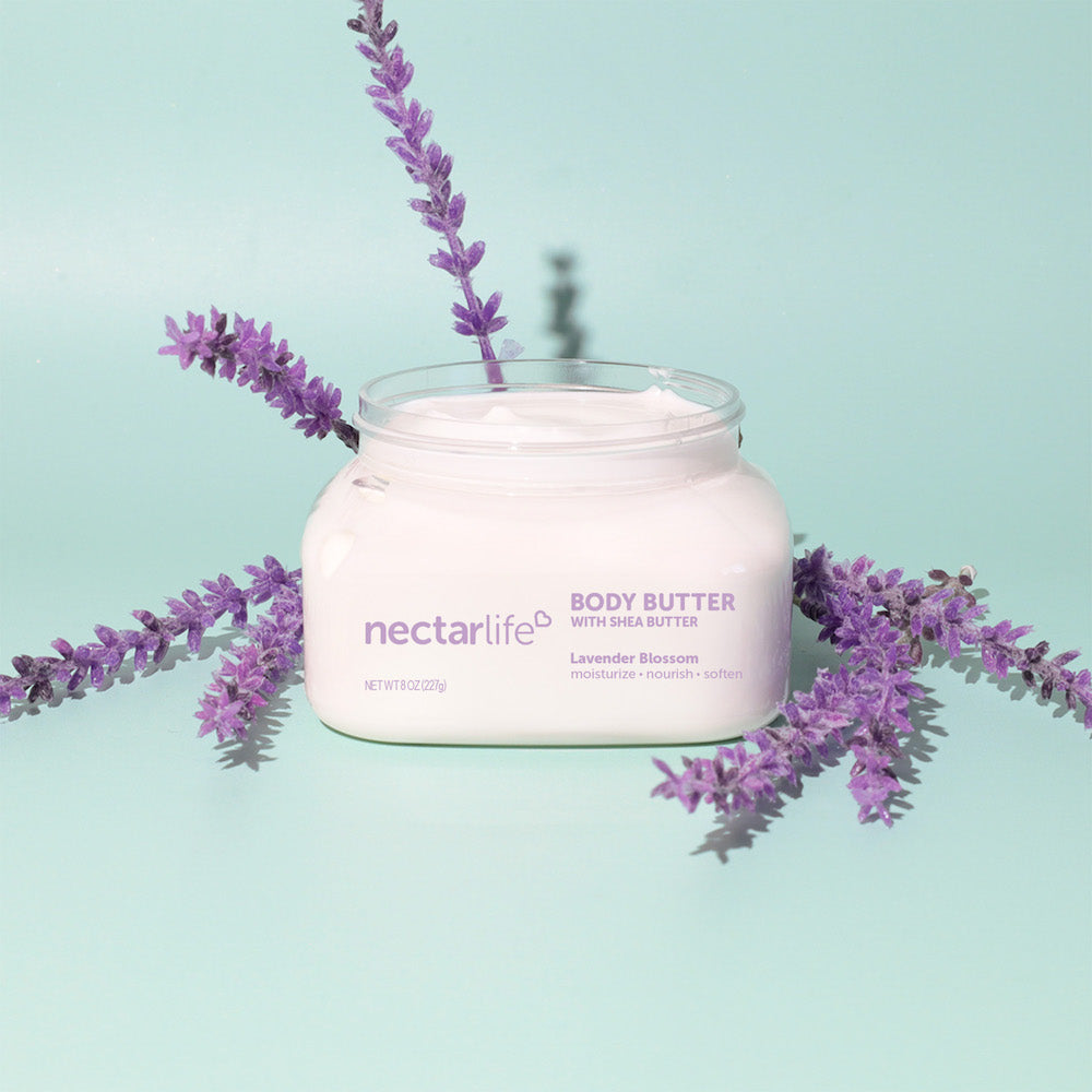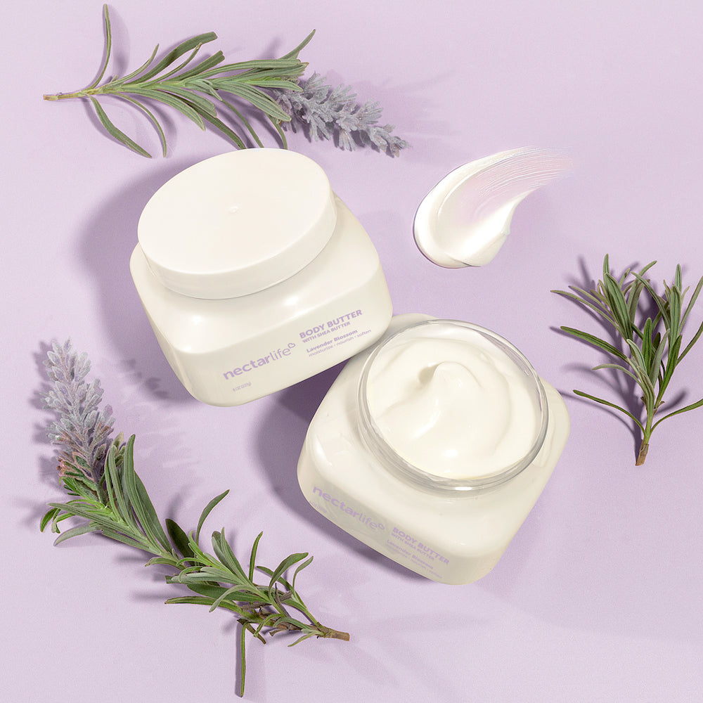Lavender Blossom: Aqua (Water), Butyrospermum Parkii (Shea) Butter, Persea Gratissima (Avocado) Oil, Prunus Armeniaca (Apricot) Kernel Oil, Cetearyl Alcohol, Stearic Acid, Cetyl Alcohol, Polysorbate 60, Parfum (Fragrance), Benzyl Alcohol, Phenoxyethanol, Caprylyl Glycol, Tocopheryl Acetate, Maranta Arundinacea Root Powder