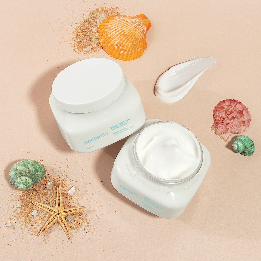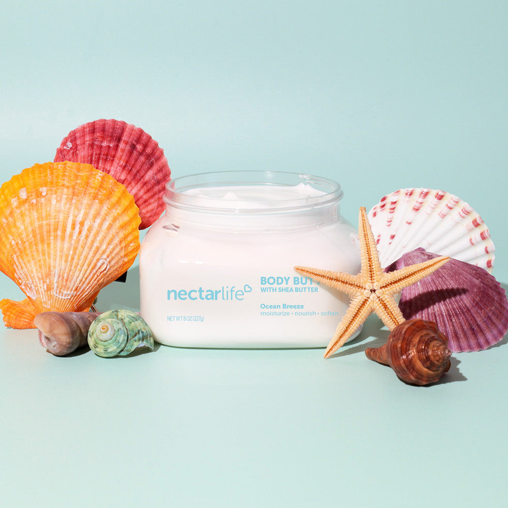 Ocean Breeze: Aqua (Water), Butyrospermum Parkii (Shea) Butter, Persea Gratissima (Avocado) Oil, Prunus Armeniaca (Apricot) Kernel Oil, Cetearyl Alcohol, Stearic Acid, Cetyl Alcohol, Polysorbate 60, Parfum (Fragrance), Benzyl Alcohol, Phenoxyethanol, Caprylyl Glycol, Tocopheryl Acetate, Maranta Arundinacea Root Powder