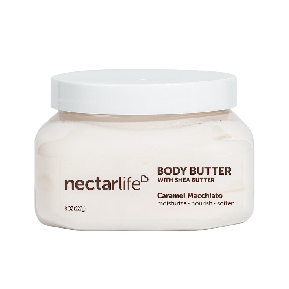 Caramel Macchiato: Aqua (Water), Butyrospermum Parkii (Shea) Butter, Persea Gratissima (Avocado) Oil, Prunus Armeniaca (Apricot) Kernel Oil, Cetearyl Alcohol, Stearic Acid, Cetyl Alcohol, Polysorbate 60, Parfum (Fragrance), Benzyl Alcohol, Phenoxyethanol, Caprylyl Glycol, Tocopheryl Acetate, Maranta Arundinacea Root Powder