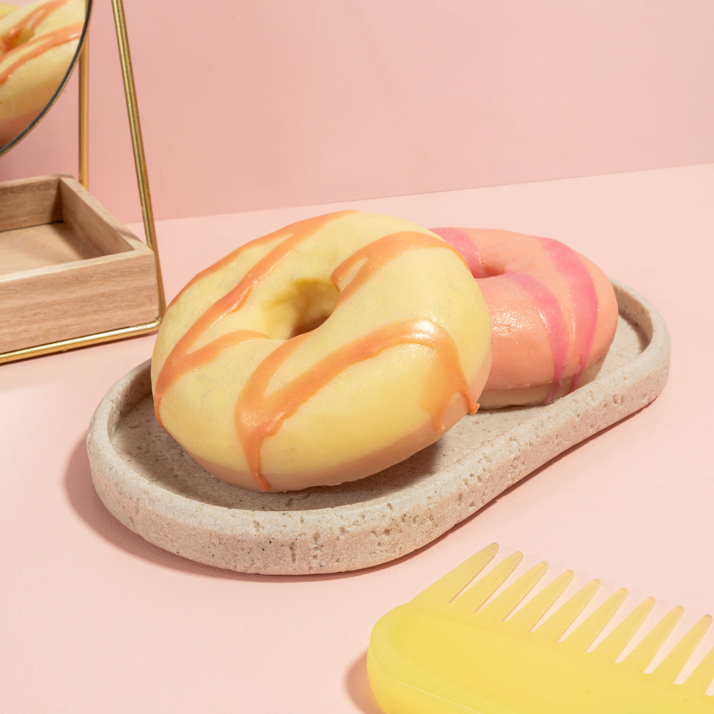 Experience a delightful bath time treat with our larger-than-life soap inspired by our famous jumbo donuts available on the donut wall in our stores. This playful, indulgent soap adds a touch of fun to bath time while moisturizing and softening skin. With ethically sourced palm oil, coconut oil, safflower oil, and glycerin, it leaves skin feeling soft, smooth, and deliciously hydrated.